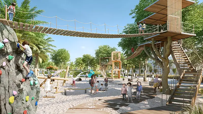 » Emphasizing well-being, it features spacious outdoor areas, landscaped pool decks, and extensive green spaces that encourage relaxation, rejuvenation, and a connection to nature.
